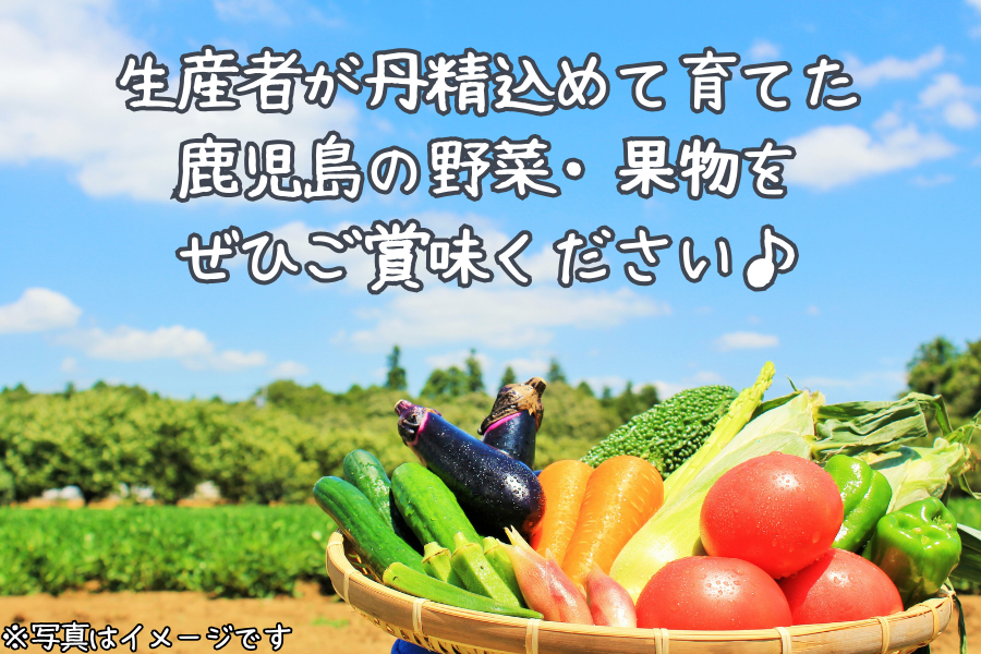 キャベツ、さつまいも、ブロッコリー、人参、トマト、ばれいしょ、ピーマン、なす、葉物野菜、かぼちゃ、白菜、ごぼう、大根、里芋、希少野菜、金柑、不知火、たんかん、紅甘夏 等