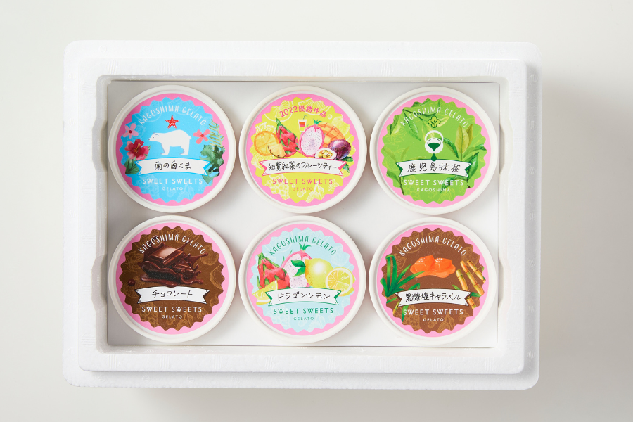 ジェラートマエストロコンテストにて日本一に輝いたシェフが、鹿児島の素材をたっぷり使用して作った滑らかなジェラートが楽しめるセットです。