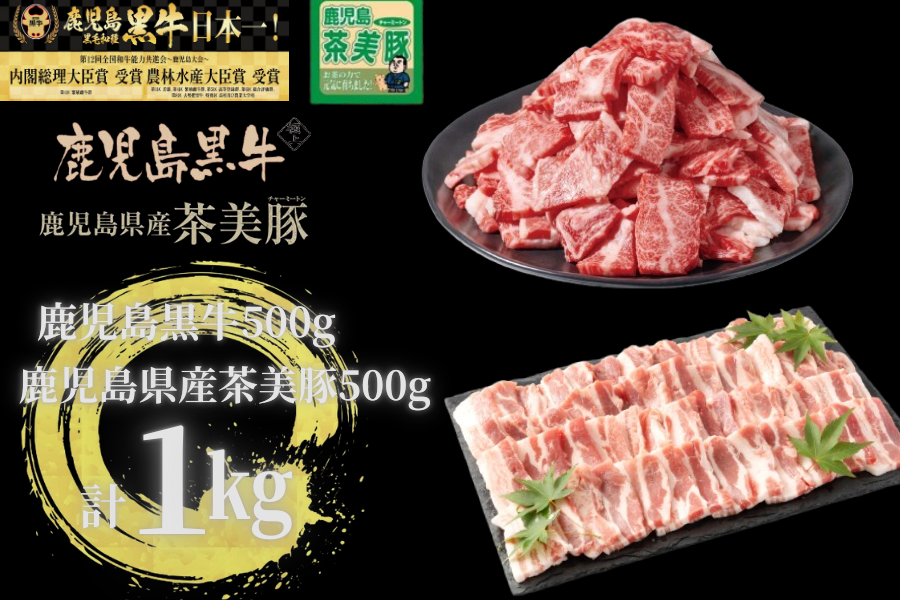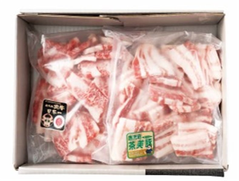 【お歳暮】鹿児島黒牛・茶美豚バラ焼肉セット (厚切り)1kg