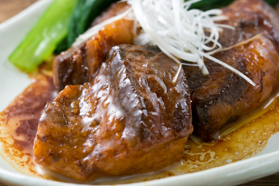黒豚バラ肉に加工黒糖と鹿児島の焼酎、本醸造醤油で味付けしたタレと合せ加圧加熱殺菌した角煮です。 加圧加熱殺菌することで柔らかく仕上がっております。