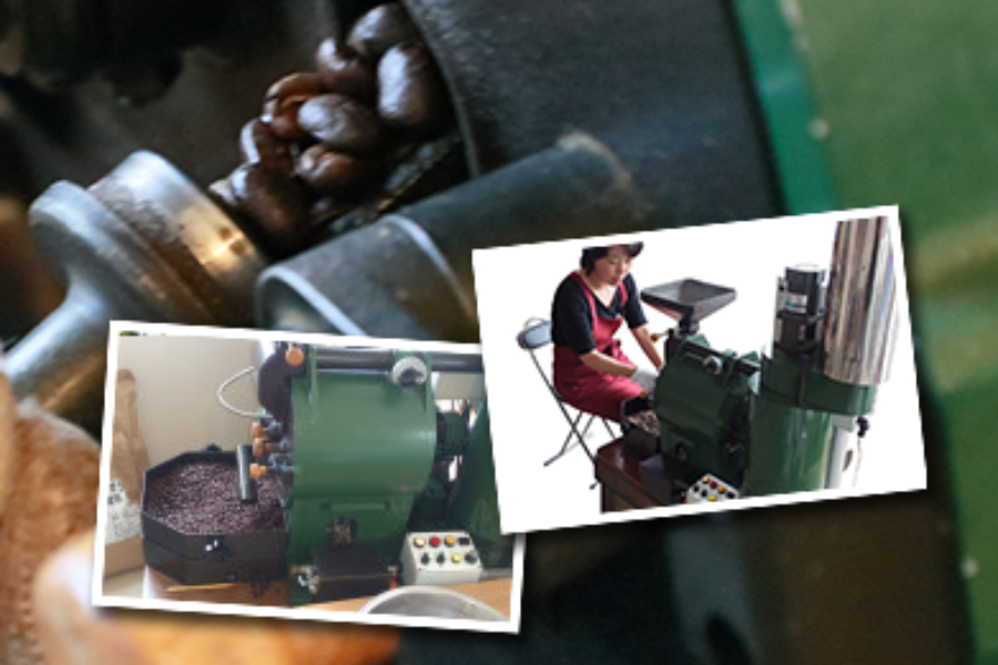 小型の焙煎機で少しずつ、必要な量だけ焙煎しますから新鮮で、焼きムラも少なく高品質な自家焙煎珈琲豆に仕上がります。