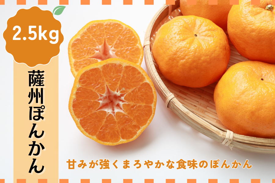 【商品内容】薩州ぽんかん2.5kg 2L〜M *サイズ・玉数はお選びいただけません *デリケートな果物のため皮に傷がつきやすい特徴があります(食味は問題ございません) 【配送方法】常温
