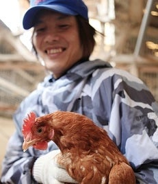 国内の産卵鶏では数%しかいない純国産鶏「もみじ」は、日本の風土に相性のいい大型で丈夫な鶏です! 黄身も大きく、美味しい卵を産んでくれます。 純国産鶏「もみじ」を飼養し、自給率、地産地消にも貢献しています。