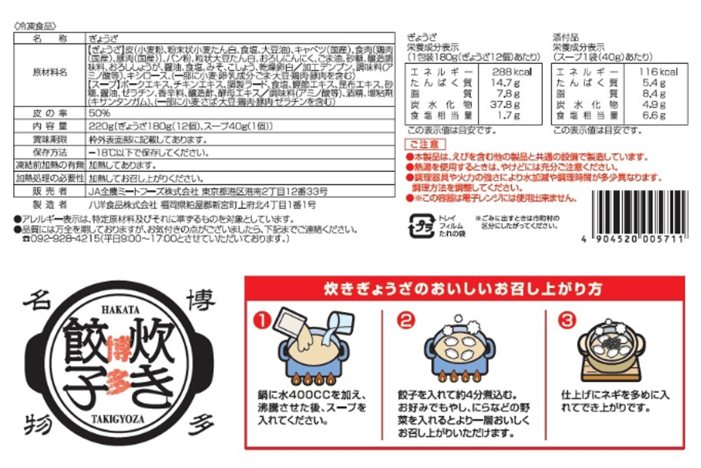 (餃子15g×12個、スープ40g)×2P(計440g)