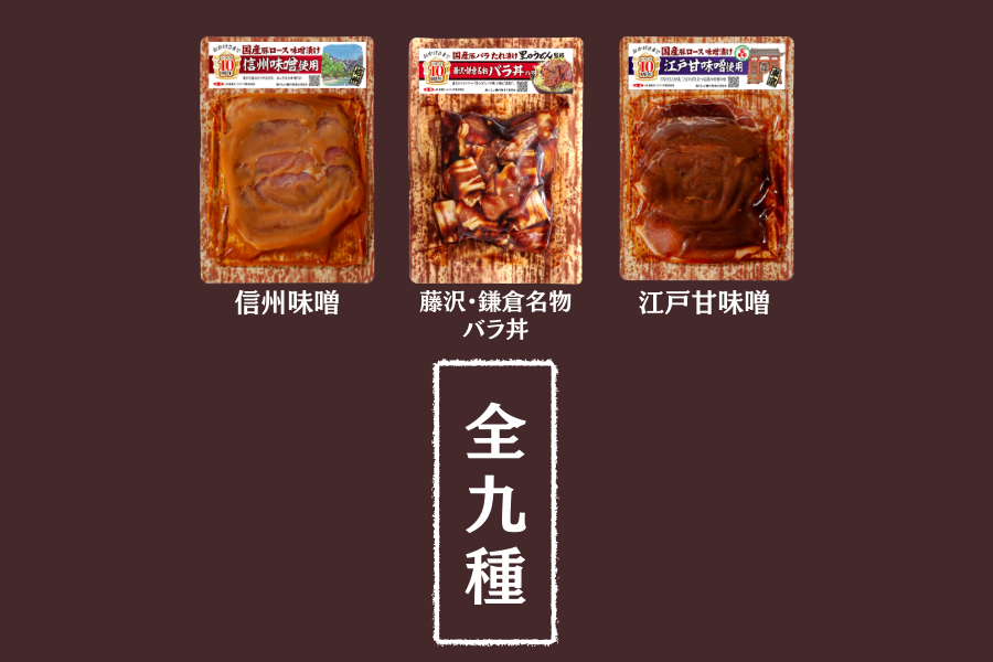 国産の豚肉に全国各地のご当地味噌やたれを漬け込んだ商品です。おかげさまで販売開始から2025年で10周年を迎えます。