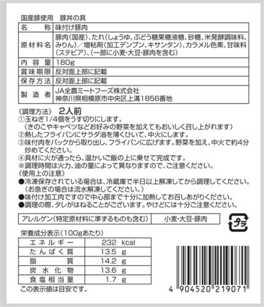 国産豚使用 どんぶりの具シリーズ 豚丼の具