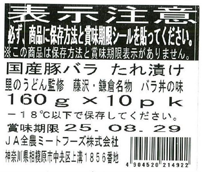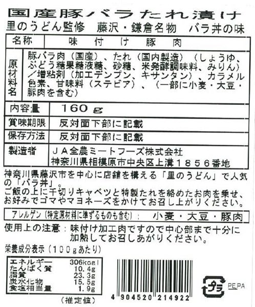 国産豚バラたれ漬け藤沢・鎌倉名物バラ丼の味 160g×10パック入り