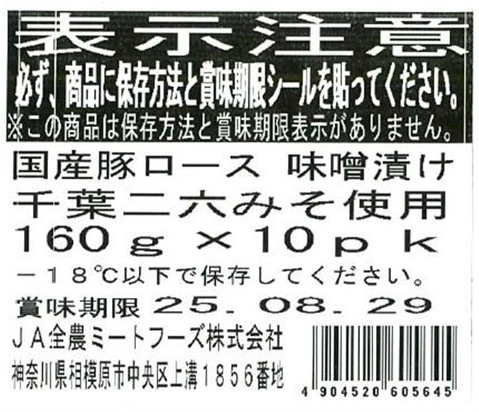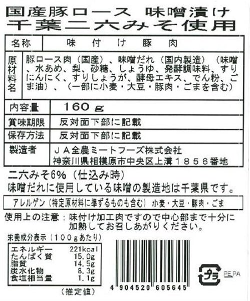 国産豚ロース味噌漬け千葉二六みそ使用 160g×10パック入り