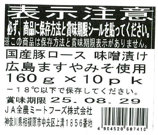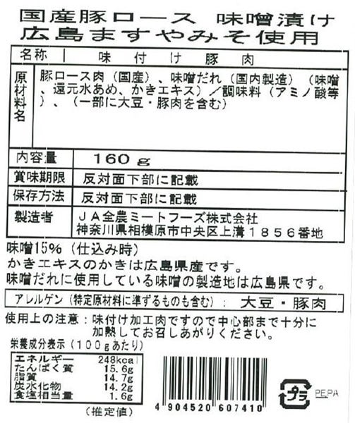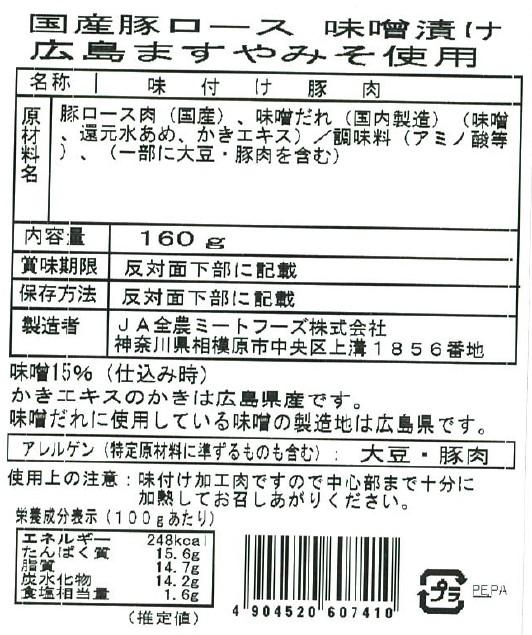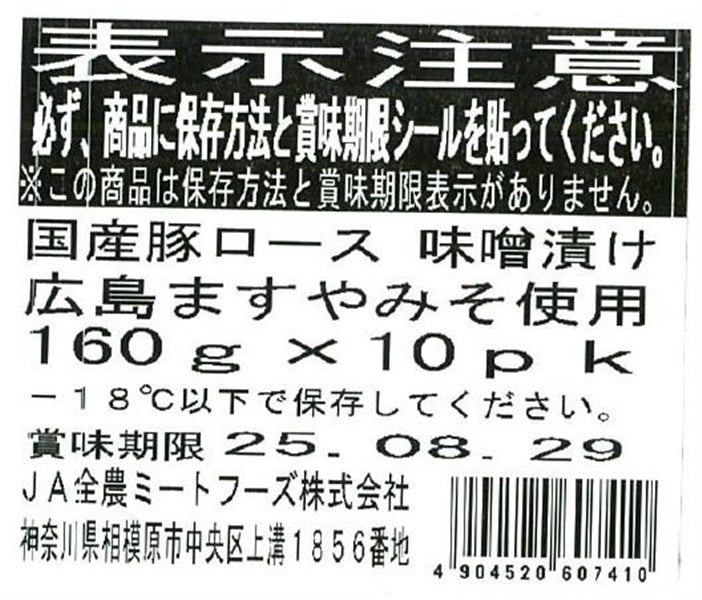 国産豚ロース味噌漬け広島ますやみそ使用 160g×10パック入り