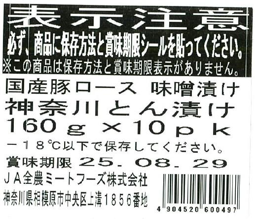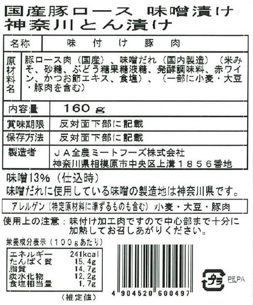 国産豚ロース味噌漬け 神奈川とん漬け 160g×10パック入り