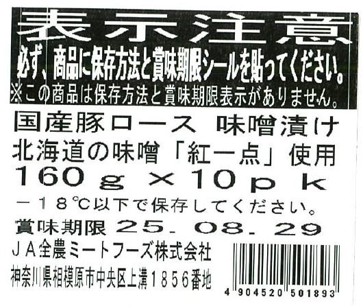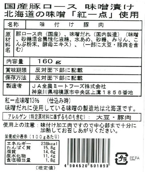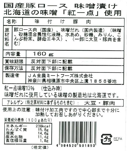 国産豚ロース味噌漬け 北海道の味噌 「紅一点」使用 160g×10パック入り