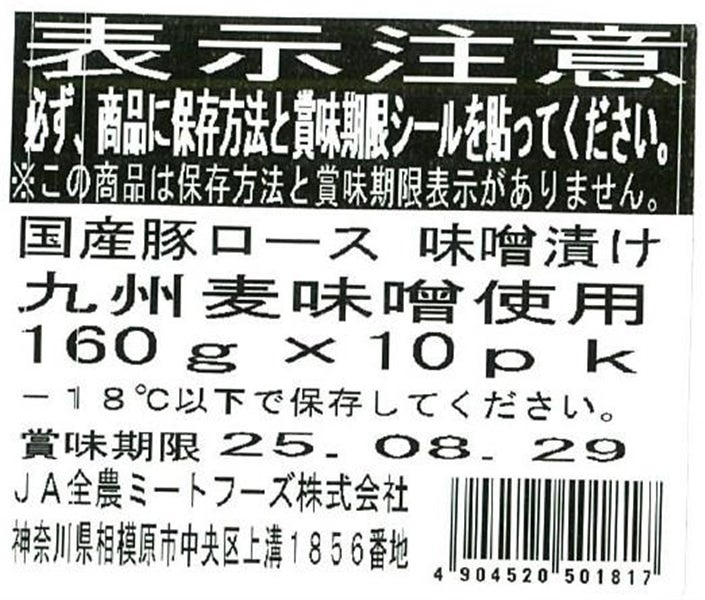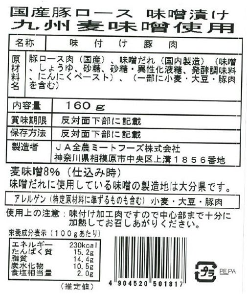 国産豚ロース味噌漬け 九州麦味噌使用 160g×10パック入り