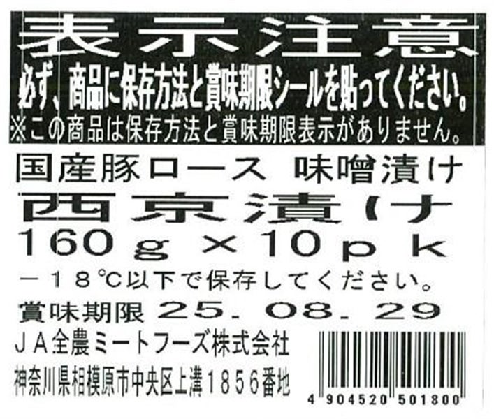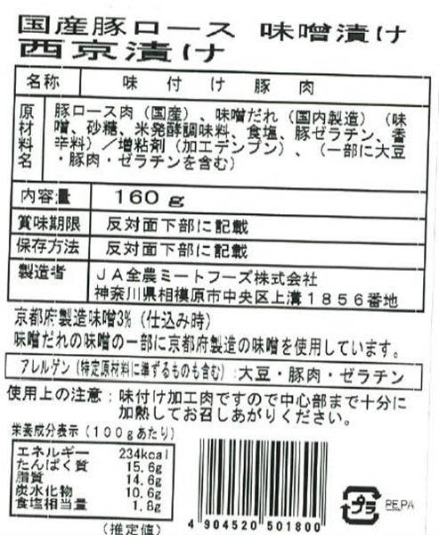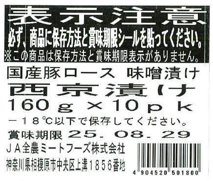 国産豚ロース味噌漬け西京漬け 160g×10パック入り