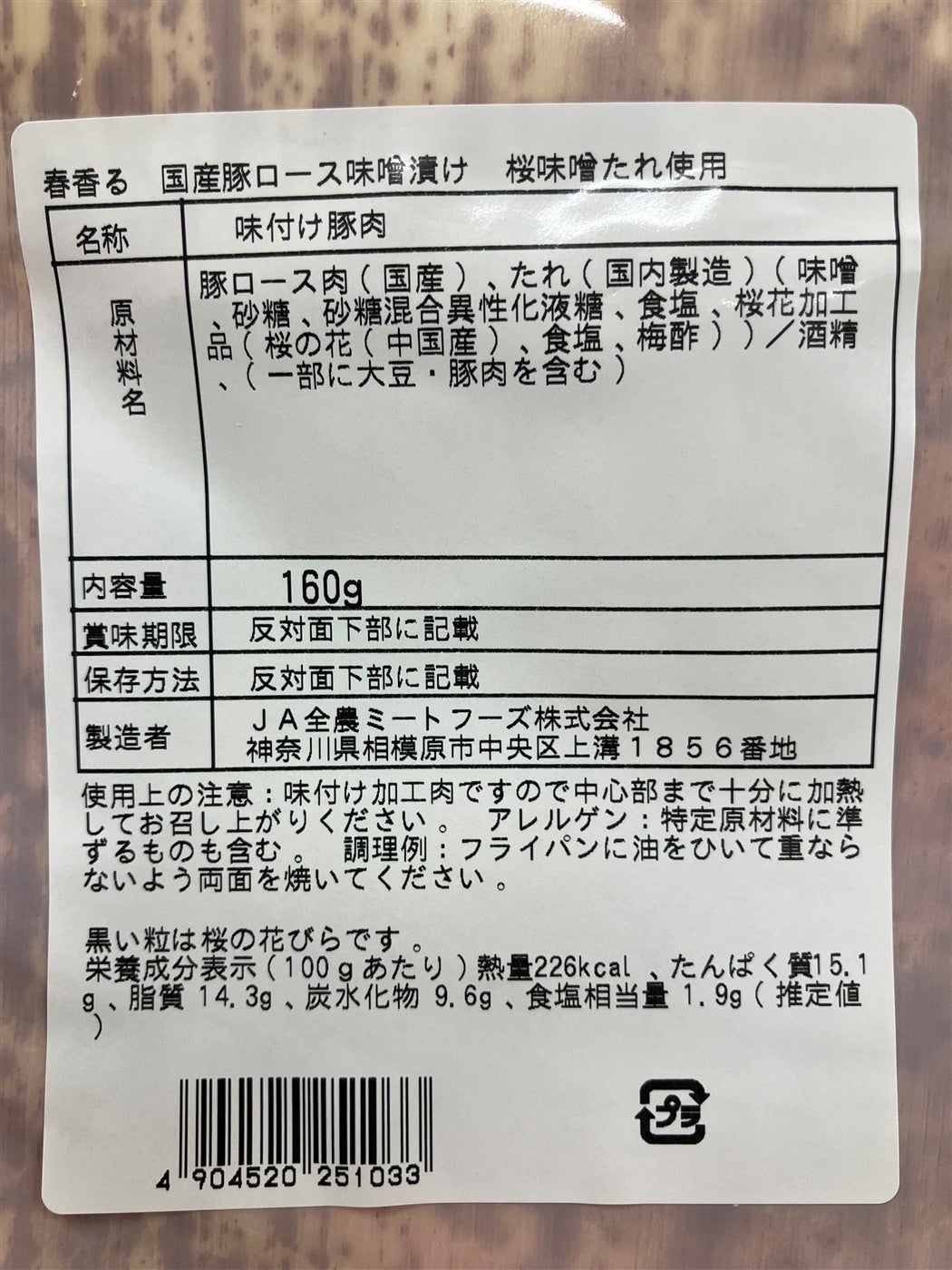 春香る 国産豚ロース味噌漬け 桜味噌たれ使用 160g×10パック入り