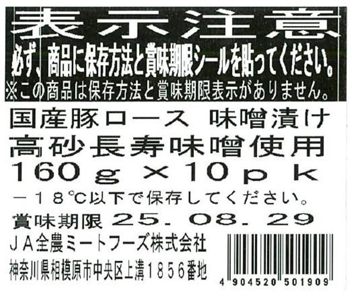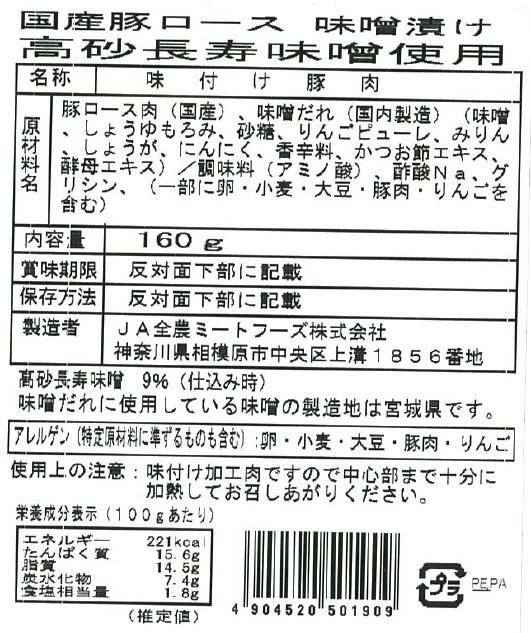 国産豚ロース味噌漬け高砂長寿味噌使用 160g×10パック入り