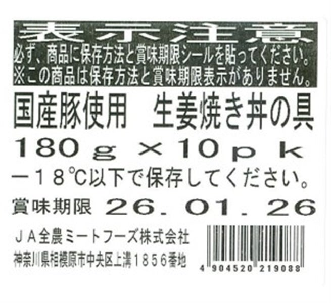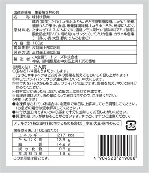 国産豚使用 どんぶりの具シリーズ 生姜焼き丼の具 180g×10パック入り