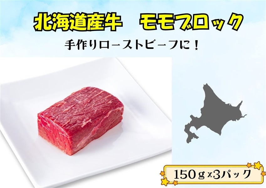 【しっとりローストに最適】北海道産牛モモブロック 150g×3パック