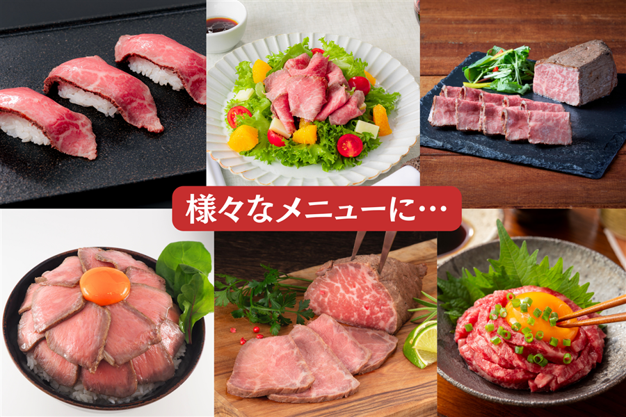 ★ブロックカットした和牛モモ肉を直火で焼き上げ、低温加熱しました。