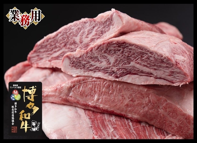 福岡県産黒毛和種「博多和牛」のトモバラ部位のうち、フランク・カイノミ・ヘッドバラと呼ばれる部分のみを脂肪整形した商品です。
