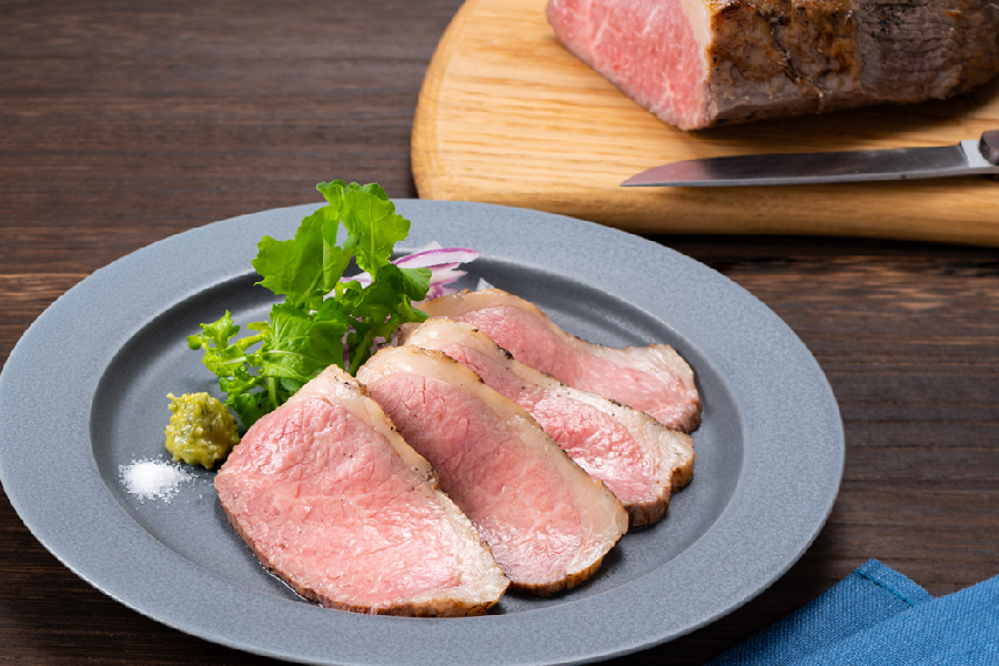 スライスしやすいよう1/4カットになっていますのでお好みの厚みに切って、贅沢にローストビーフを味わえます。
