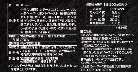 九州産の黒毛和牛モモを贅沢に使用したレトルトカレーです。