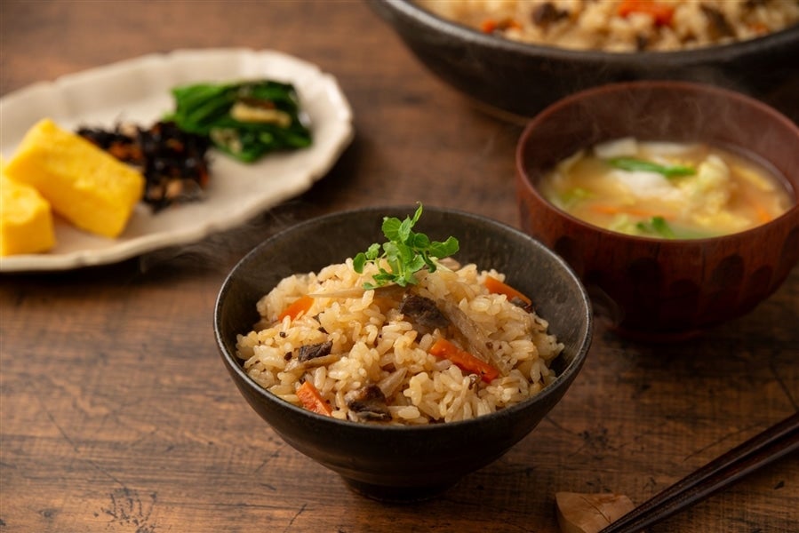 博多和牛と国産のごぼう・人参をたっぷり使用し、国産の豚脂を加えて焼きあご・昆布・かつお節の3種のだしで仕上げた炊き込みご飯の素です。