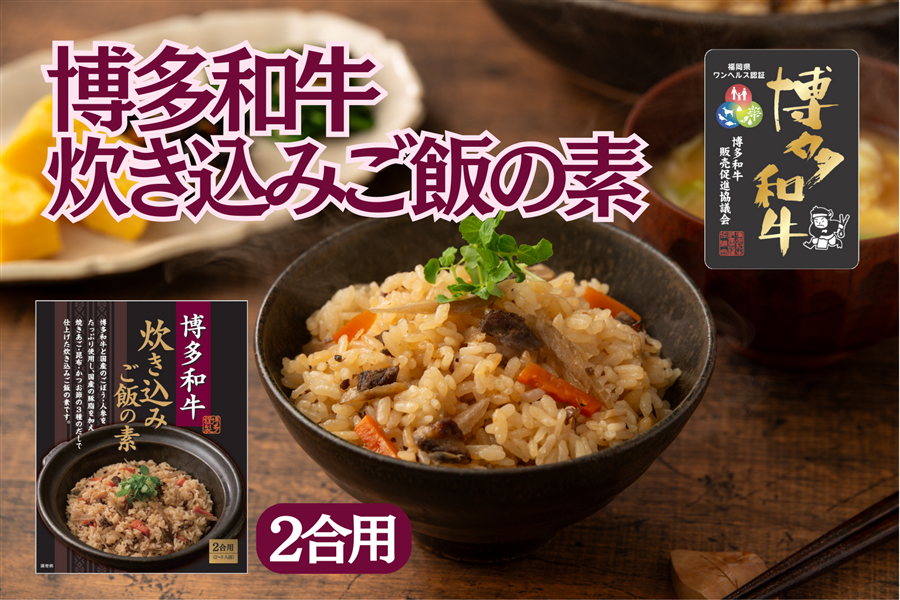 福岡県産の銘柄和牛「博多和牛」と3種のだしで仕上げた炊き込みご飯の素です。