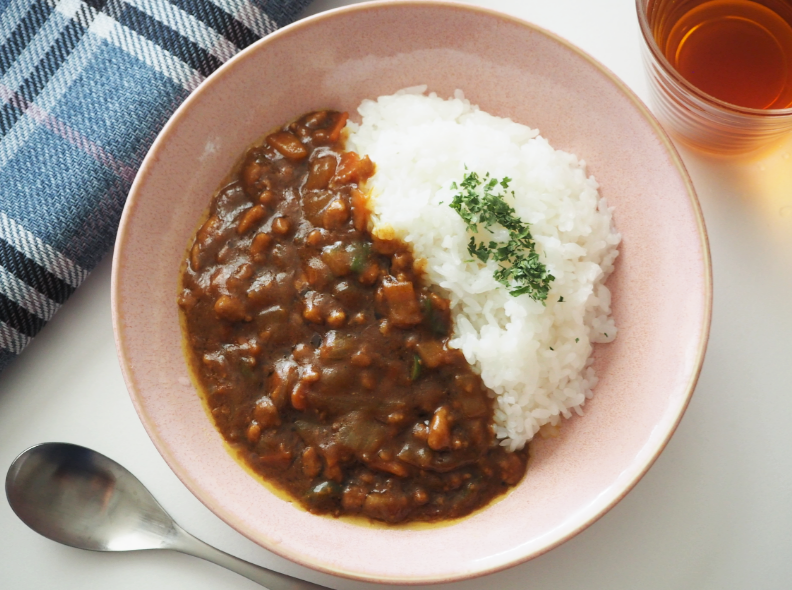 一番人気だったのは”キーマカレー風”! お肉と刻んだ玉ねぎ・人参・ピーマンを一緒に炒めて市販のカレールーで仕上げてみました。 キーマカレー感が出るよう、箱記載の水量の2/3に減らしてみましたが、水の代わりにトマト缶や通常の水量でひき肉カレーにしても◎ お肉の脂がカレーに溶け込んでなじむので脂も気にならずおいしい!