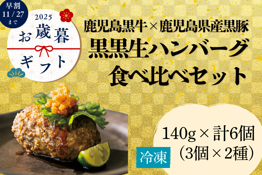 【お歳暮】鹿児島黒牛×鹿児島県産黒豚 黒黒生ハンバーグ食べ比べセット(140g×6個)