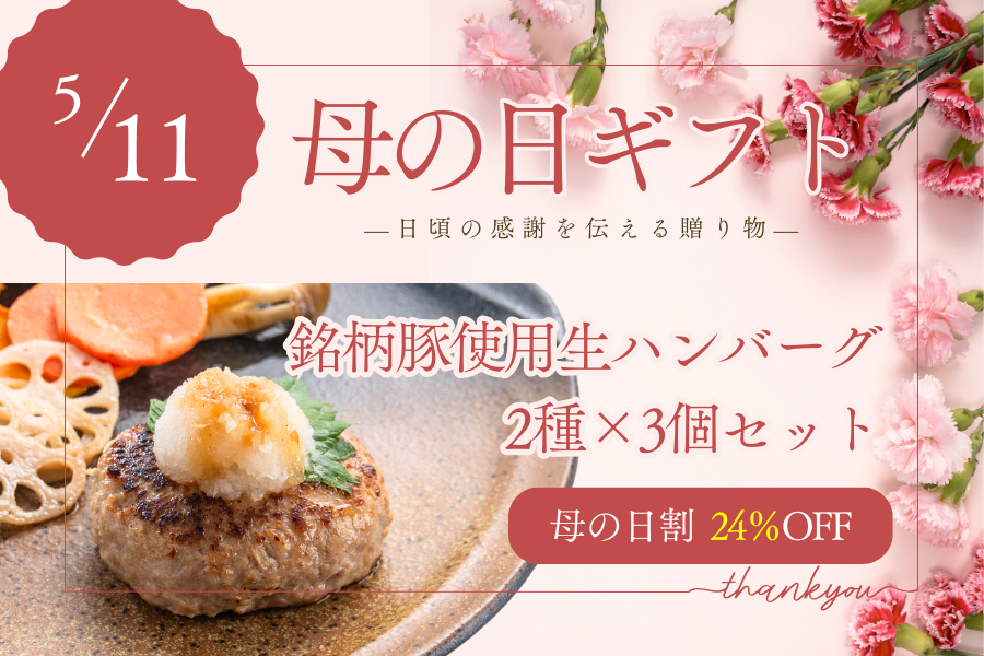 【母の日 カード付き】銘柄豚使用 生ハンバーグ食べ比べセット(銘柄豚2種×3個)
