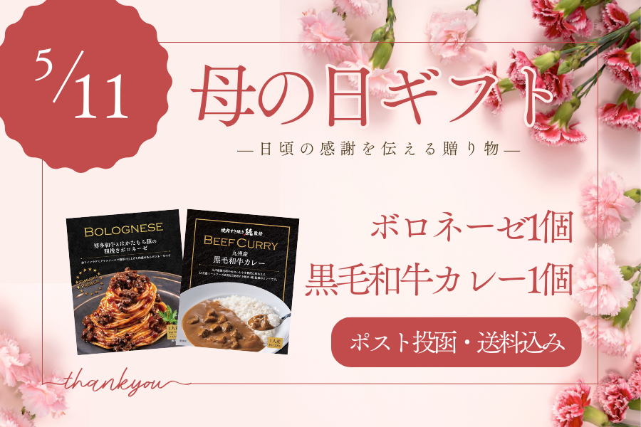 【母の日 カード付き】九州産黒毛和牛カレーと博多和牛とはかたもち豚の粗挽きボロネーゼ【送料込み】