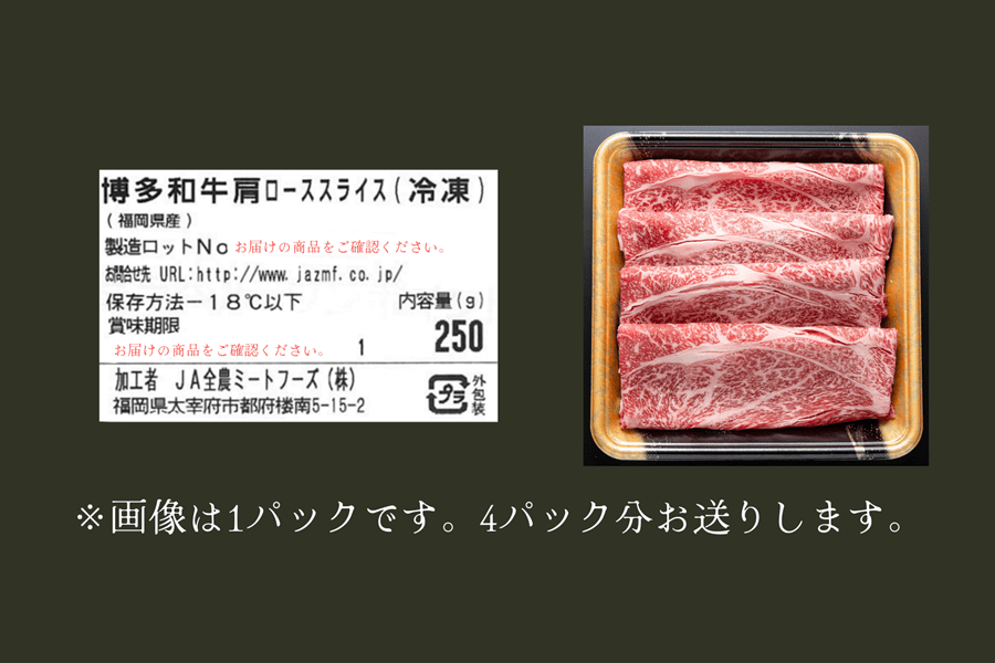 〈セット内容〉博多和牛肩ローススライス250g×4パック