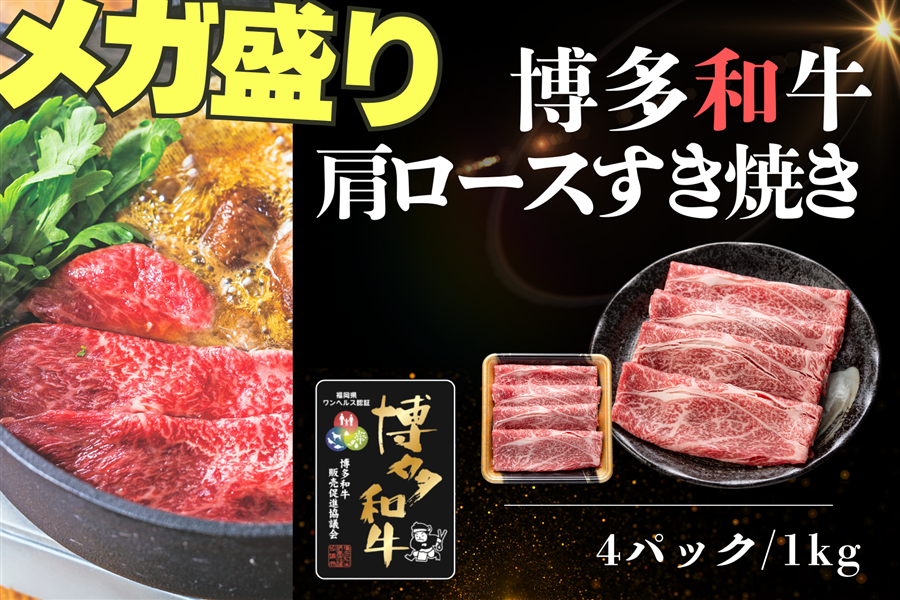 【メガ盛り】博多和牛肩ロースすき焼き1kg(250g×4p)【冷凍】