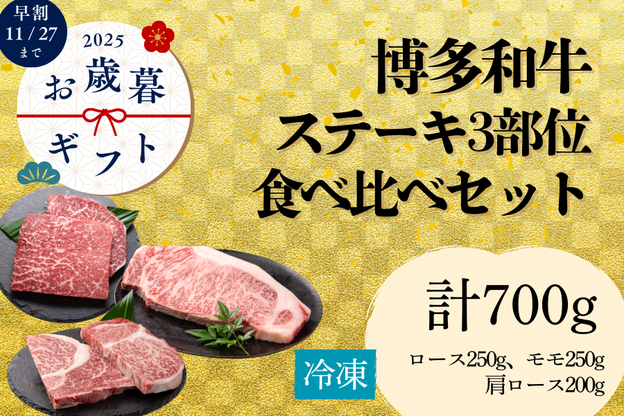 【お歳暮】博多和牛ステーキ3部位食べ比べセット(ロース・肩ロース・モモ)