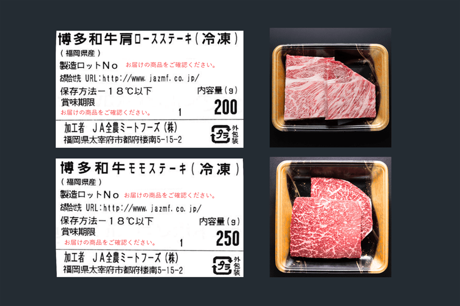 福岡県の銘柄和牛”博多和牛”をステーキで堪能できるセットです。