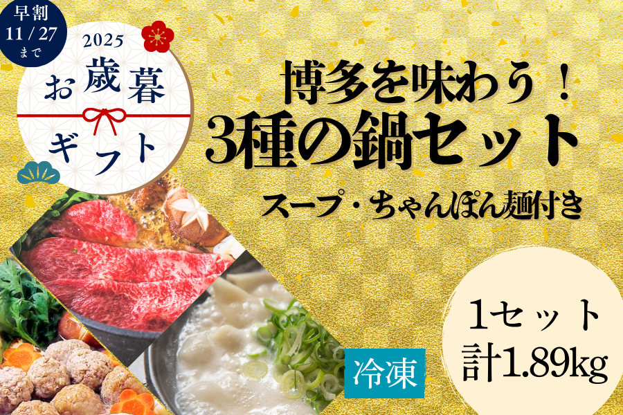 【お歳暮】博多を味わう!3種の鍋セット(スープ・ちゃんぽん麺付き)