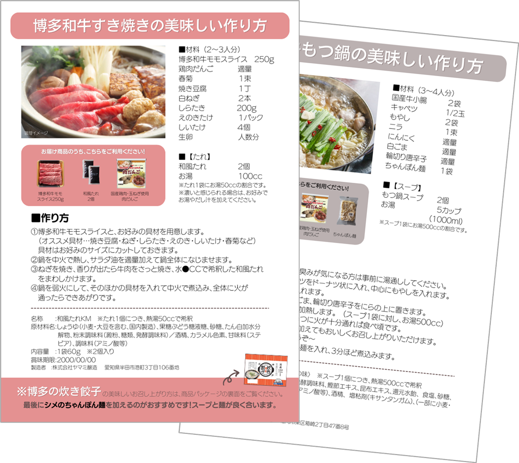 おいしいお召し上がり方の紙を商品に同封してお送りします!