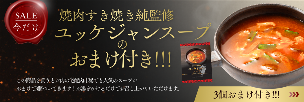 もはや定番とも言える「焼肉すき焼き純監修 ユッケジャンスープ」がおまけで3個もついてくる!!!
