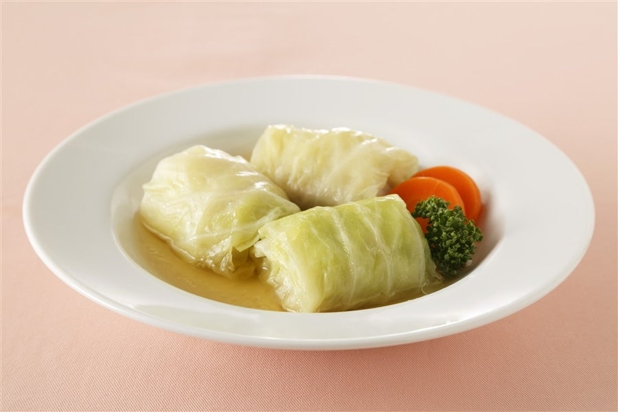 このロールキャベツは、ひとつひとつ手で巻いてつくっておりますので少々、ほどけやすくなっております。