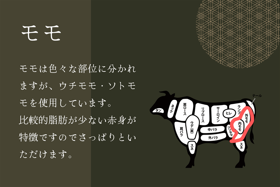 モモは比較的脂肪分が少ない部位ですので、赤身がお好みの方に特におすすめです。