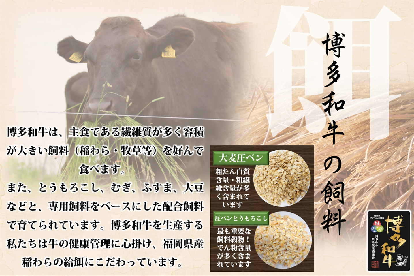 赤身と霜降りの芳醇な風味、上質な脂の肉汁とほのかに甘い口どけを存分にご堪能いただけます。 福岡県産の良質な稲ワラで育つ、全国に誇る福岡ブランド牛「博多和牛」を心ゆくまでお楽しみください。