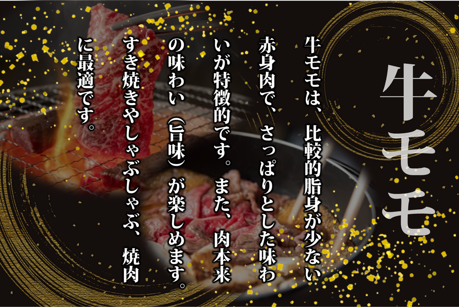 赤身と霜降りの芳醇な風味、上質な脂の肉汁とほのかに甘い口どけを存分にご堪能いただけます。
