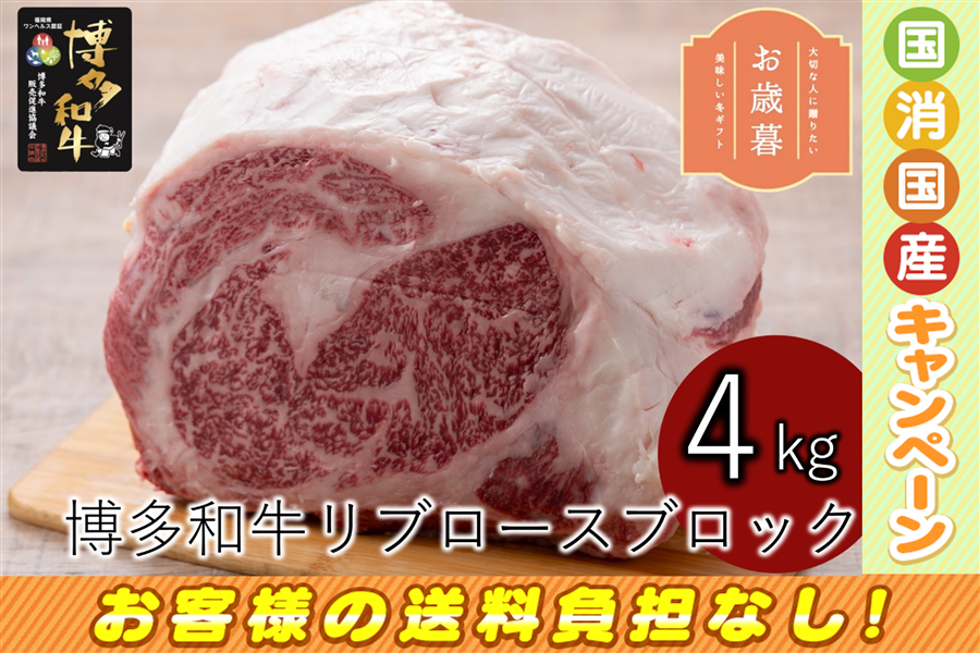 【お歳暮】博多和牛リブロースブロック 約4.0kg