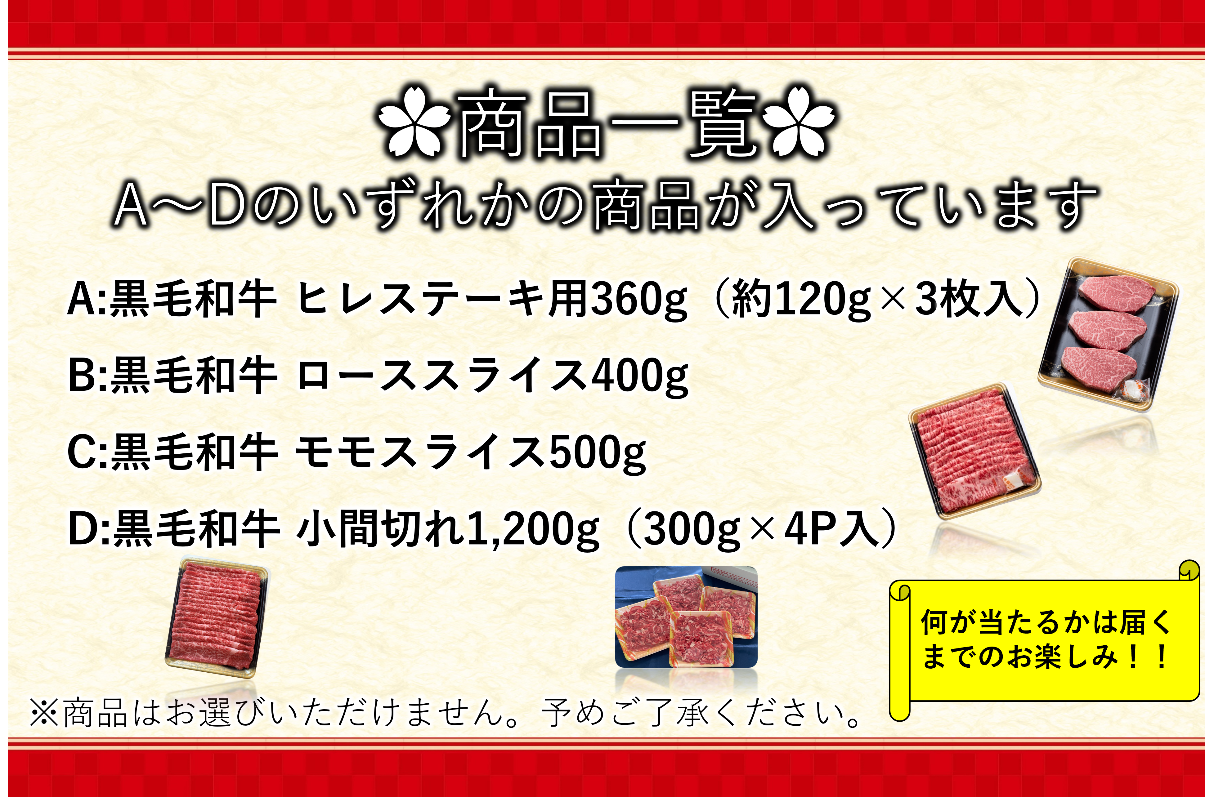 D:黒毛和牛 小間切れ1,200g(300g×4P)