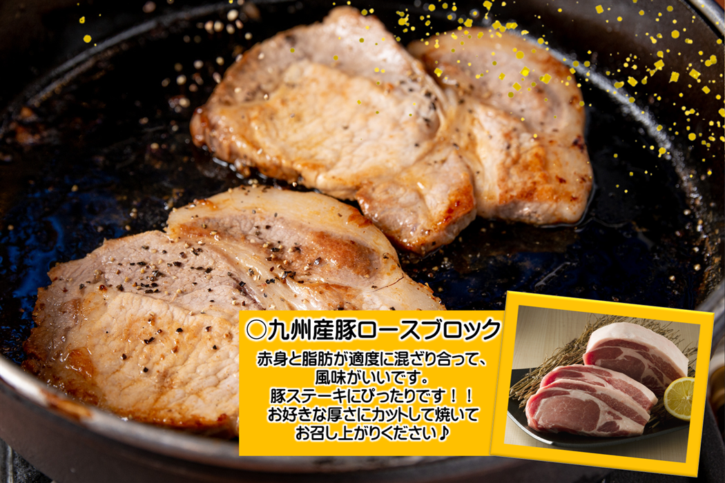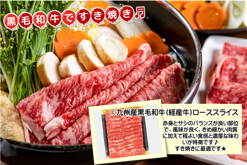 九州産黒毛和牛(経産和牛)ローススライス:すき焼きにぴったりの黒毛和牛です!! 九州産豚ロースブロック:ステーキやとんかつ、煮豚など使い勝手抜群!! 九州産豚ロースしゃぶしゃぶ用:お鍋やしゃぶしゃぶにおすすめの一品です!! シークレット商品:九州産豚ロースを使用した加工品です!! ロース肉づくしの贅沢なお肉福袋です。限定100セット!!
