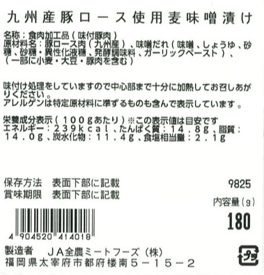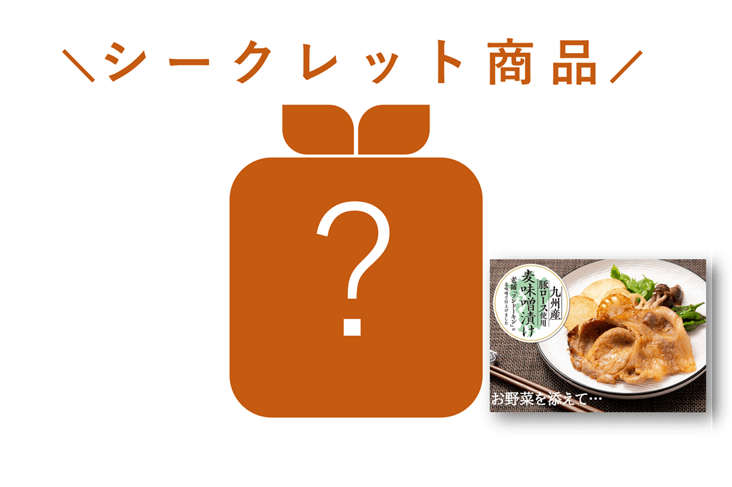 【商品詳細】 ●九州産黒毛和牛(経産和牛)ローススライス1.2g(400g×3P) 包装形態:トレーパック 賞味期間:加工日を含む180日 保存方法:-18℃以下で保存 ●九州産豚ロースブロック600g 包装形態:真空包装 賞味期間:加工日を含む180日 保存方法:-18℃以下で保存 ●九州産豚ロースしゃぶしゃぶ用400g 包装形態:トレーパック 賞味期間:加工日を含む180日 保存方法:-18℃以下で保存 ●シークレット商品180g ※麦味噌が食欲をそそる九州産豚ロースを使用した加工品です。 賞味期間:製造日を含む180日 保存方法:-18℃以下で保存 味付け処理をしていますので、中心部まで十分に加熱してお召し上がりください。