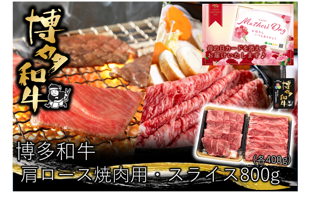 【母の日】博多和牛肩ロース焼肉用・スライス各400g※カード付き