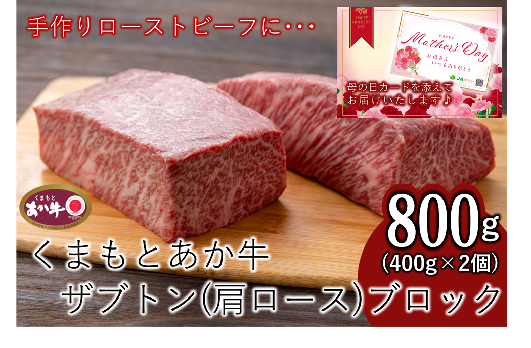 【母の日】くまもとあか牛 ザブトン(肩ロース)ブロック 800g※カード付き