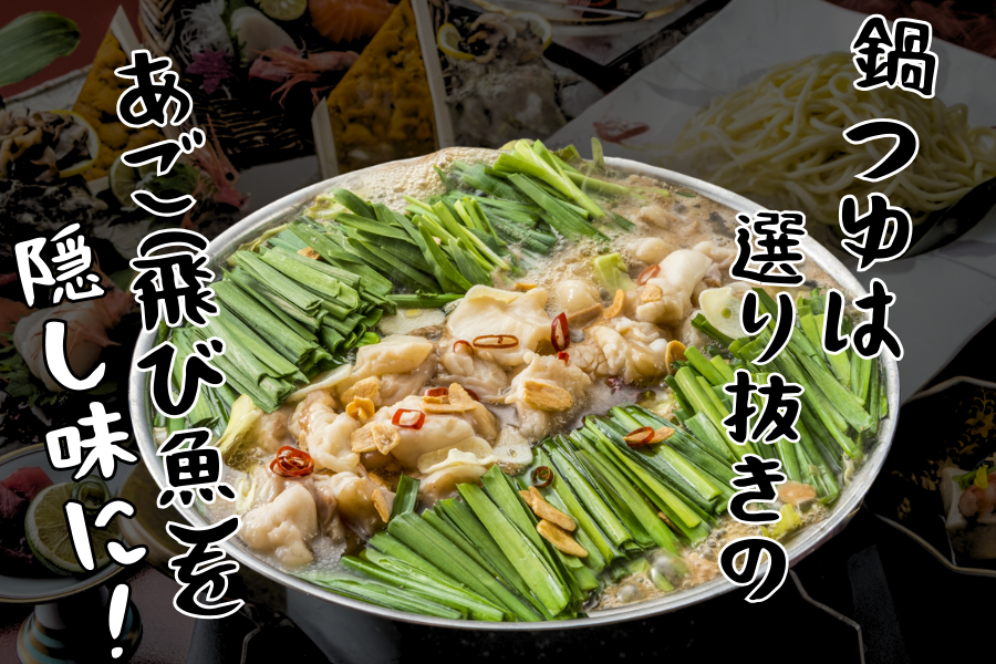 国産牛もつ+あごだし鍋つゆ+麺 (3〜4人前)