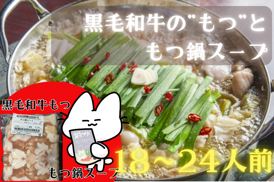 【国産和牛の"もつ"(小腸)と本場博多の味もつ鍋スープのセット】18人前〜24人前